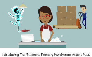 New Assets: Business Friendly Handyman Action Pack By vyd@dmin on August 21, 2013Introducing our Business Friendly Handyman Action Pack!Work it!Now your characters can fix anything! From welding to fixing faucets and electrical wires, we’ve got you covered.We’ve also included some other great actions in here, including assembly line production, quality control, dish washing, fork lift operating, and more.Perfect for those that like a little more grease in their videos, so to speak.Watch this video to see what we’re talking about!To start using Handyman Actions in your videos, log in or sign up at /plans/business. Click on the Business Friendly Video Theme. Once inside the Video Maker, drag a character onto The Stage. Click on the character to reveal more options. Then, mouse over to the Actions Tab, and select the Handyman category. Select one that helps tell your story best.Now get to work!Happy animating!